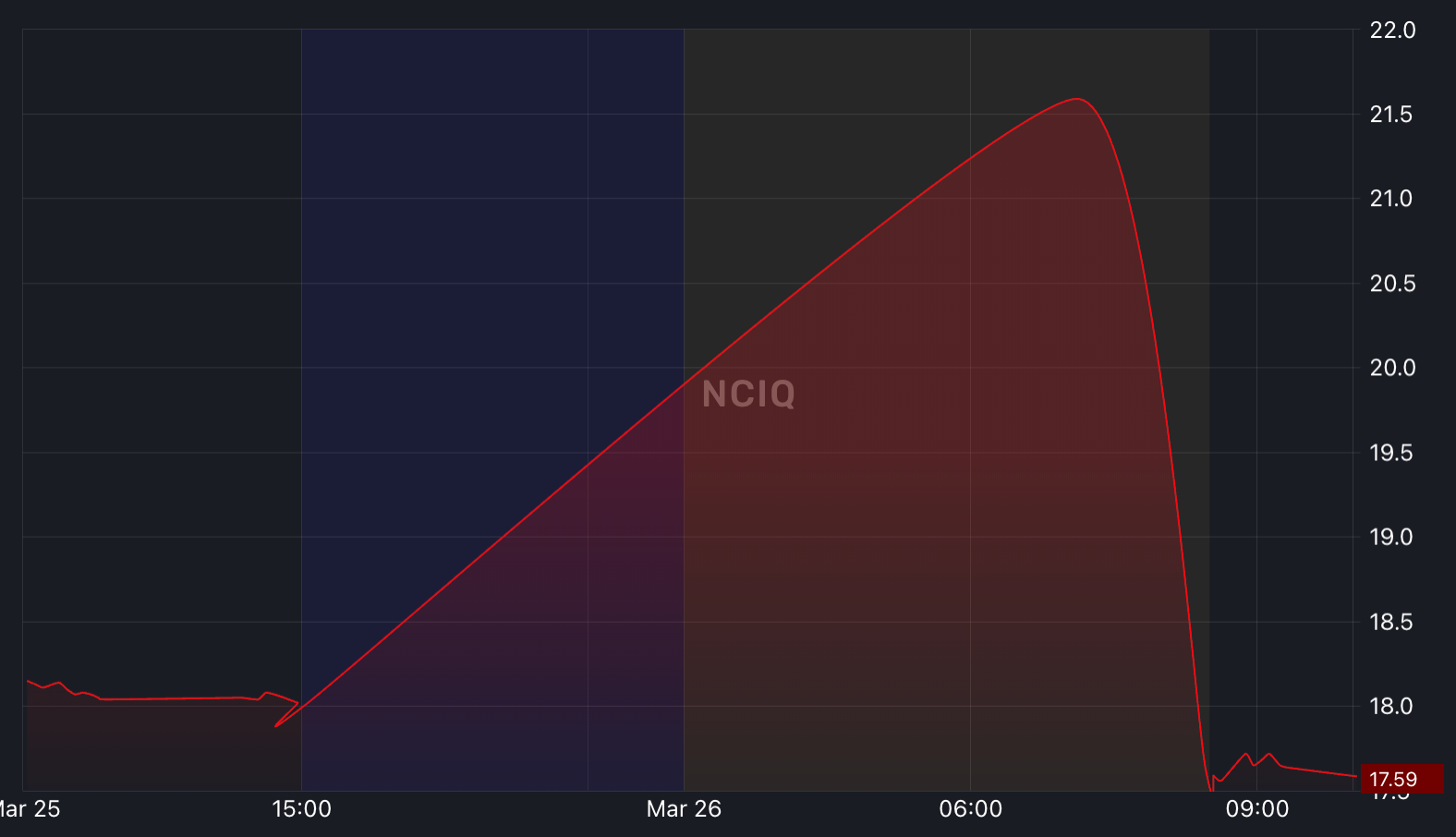 NCIQ had nothing going on. Prior rips probably influenced it, but not enough volume to fill the chart. My updated prompt would have filtered this.