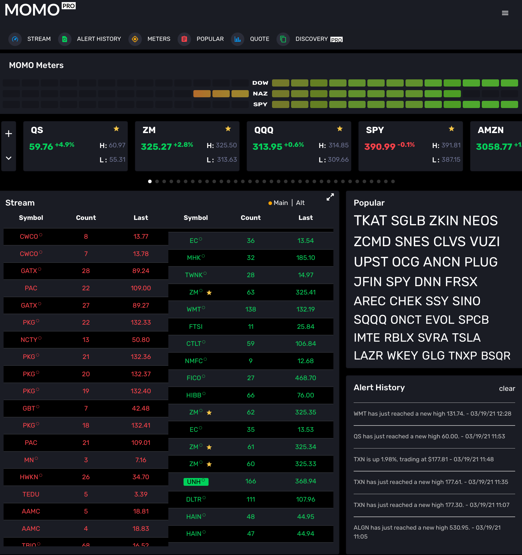 - Last week we added the ability to sort your favorite quotes by dragging and dropping (and don't forget "/" as keyboard shortcut to add a quote). This week, we added the favorite icon directly to the stream. This will help highlight when your favorites are breaking out and making new highs (or lows). Note Zoom (ZM) in Stream as well as listed as a Quote.