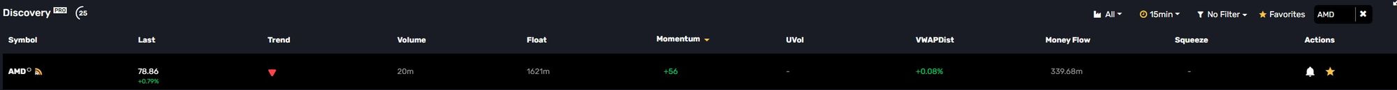 So, I added my top watches to MOMO Favorites (aka Watchlist) and use Discovery to keep an eye on a select few. For example, today I wanted to find a good entry on AMD. It’s beaten down but a solid company with, what I think, a solid long term potential. That being said, I don’t want to get in too high and I want to maximise my R/R.