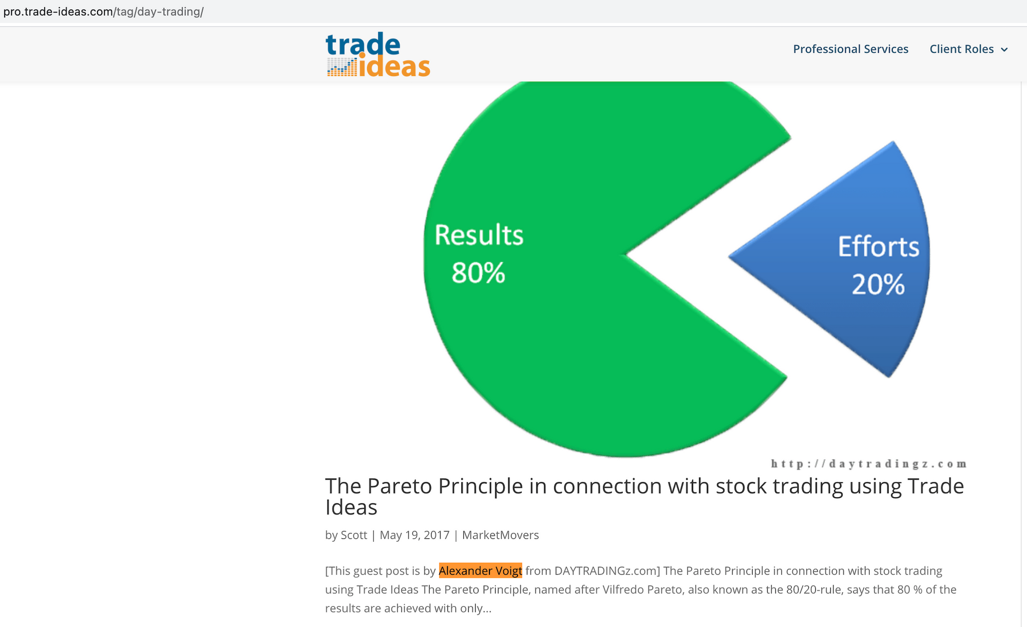In order to pull this review off as authentic the review site needs to compare other products. This is done in a pseudo-autthentic manner in a way similar to a carvinal game - but where the house always comes out on top - in this case Trade Ideas. After doing some searching I uncovered that Daytradingz.com is owned by Alexander Voigt. He's a blogger who has a site that is 90% partial to Trade Ideas. All the affiliate links and everything else is Trade Ideas. Granted his disclaimer says "While we are independent, we may be compensated for advertisements, sponsored products, or when you click on a link on our website." But the point is for the unsuspecting user to overlook this on their decision making process.