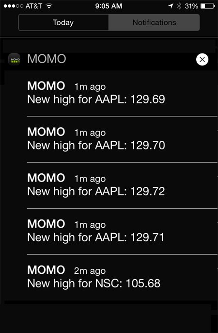 That said, MOMO is your best and most effective safety net for after hours monitoring of the market. NFLX, AMZN, ICPT, CMG, TSLA and other smaller stocks have recently had huge after-hours movement and MOMO is the only real-time stock alerting app that can let you know when your stock starts making huge after hours moves so you can take action after a few dollars of movement and let others deal with a fifty dollar drop. (Sorry options traders, we can't help you since options trading is closed, but you already knew that).