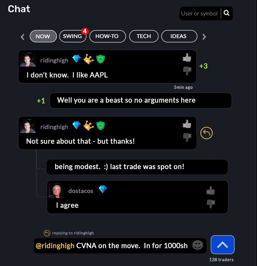 - Cashtags (such as $AAPL, $AMD, $TSLA) will incorporate live quotes with % gain so users in conversation can easily comprehend your note for the move.