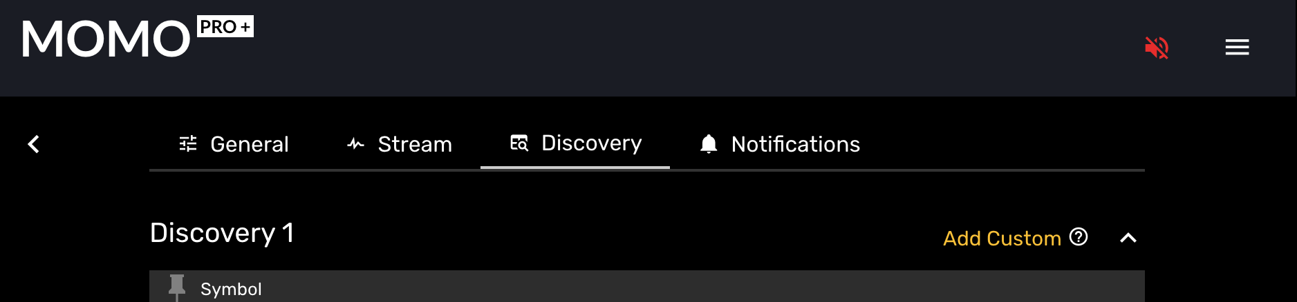 First you need to have MOMO Pro+. Once upgraded, navigate to Discovery tab in Settings. From there select the amber "Add Custom" link.
