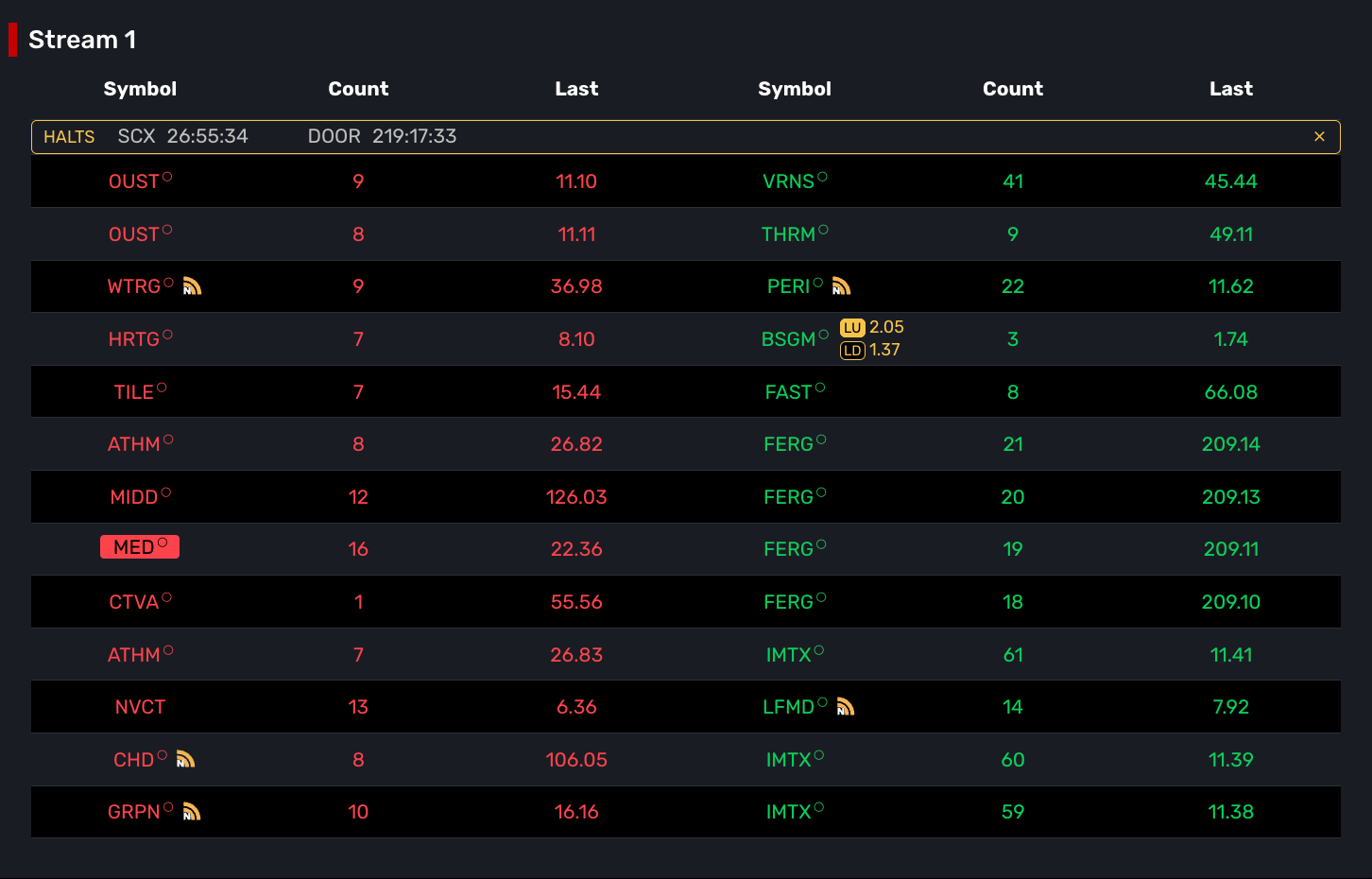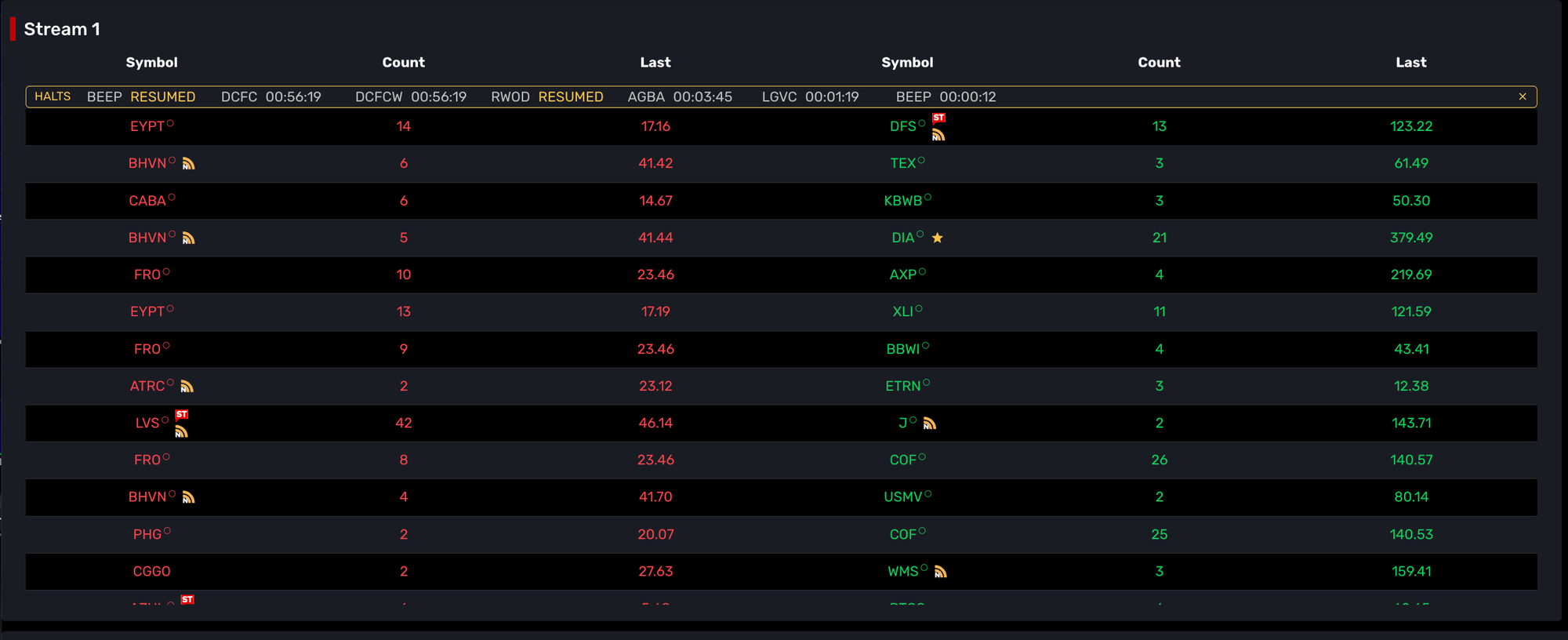 Lastly, and most excitingly, we now support limit up and limit down (LUPD) values in the Stream scanner and Discovery screener. How does it work, you ask? Well if the stock is highly active and at risk of triggering an alert we will display the limit up and down values.