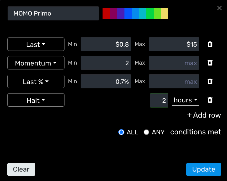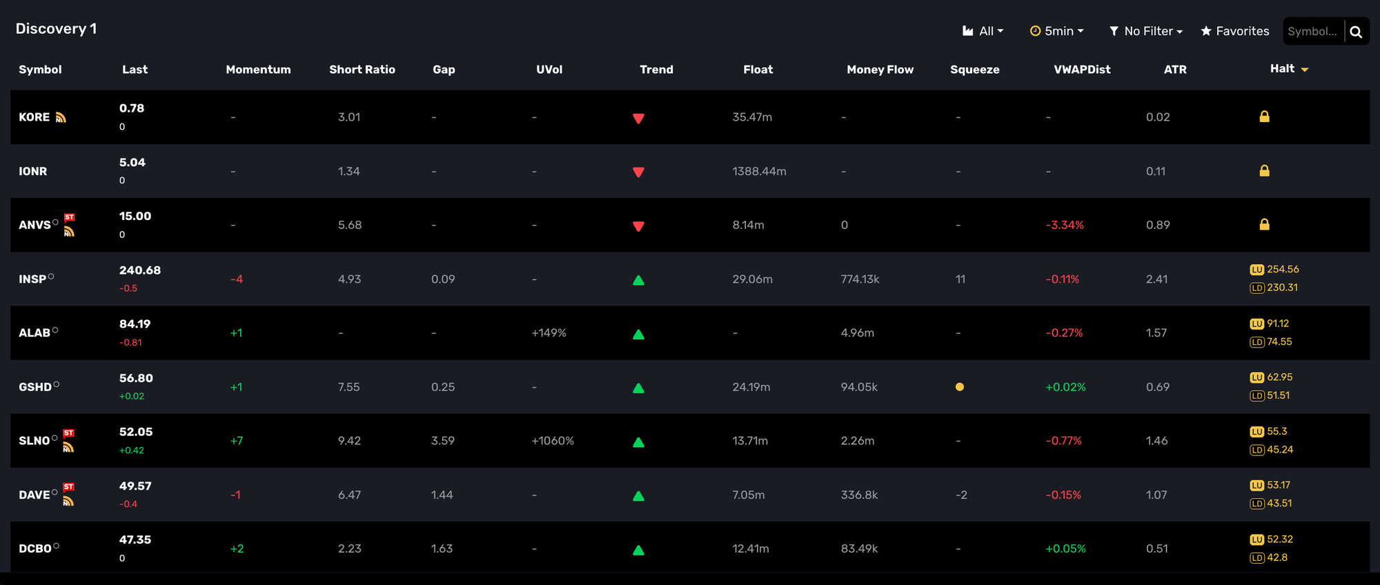 For those who are a bit more radical in your efforts to sniff out pending halts we've created a new filter and column option within Discovery to sort and filter to provide the best visibility. This could be used as another way to track moves along with our existing momentum and volume indicators.
