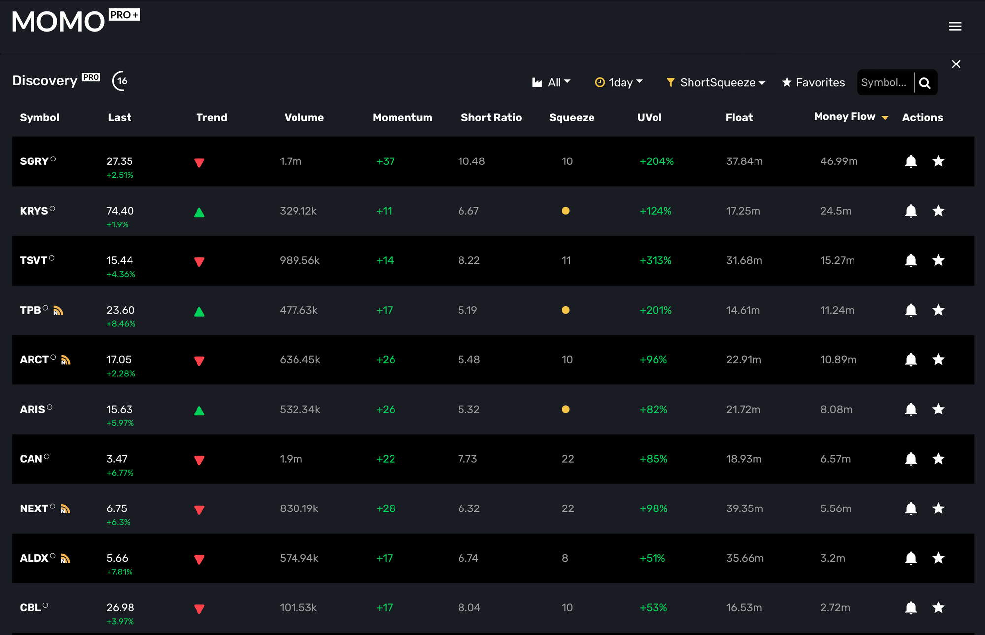 MOMO Squeeze and Short Ratio are only available in MOMO Pro+. Don't have MOMO Pro+ yet? Start here!