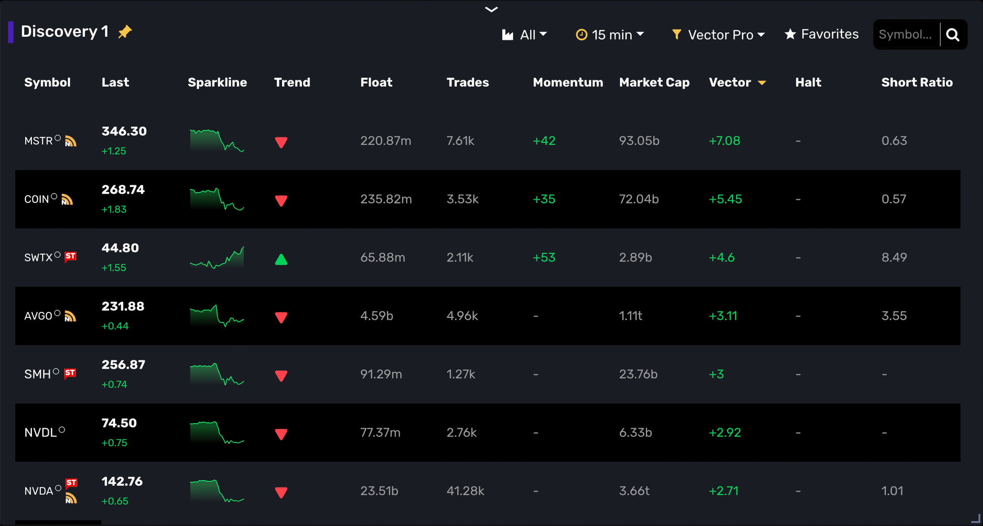 We are very excited to see how everyone uses MOMO Vector. Our testing and analysis shows its much more accurate and indicative of a validated momentum move across all timeframes. Sure you can try and eyeball the relationship of volume and price movement on charts for a single stock - but now you can see the relative performance versus other stocks and use as a screen alone or refined further with our other filters.