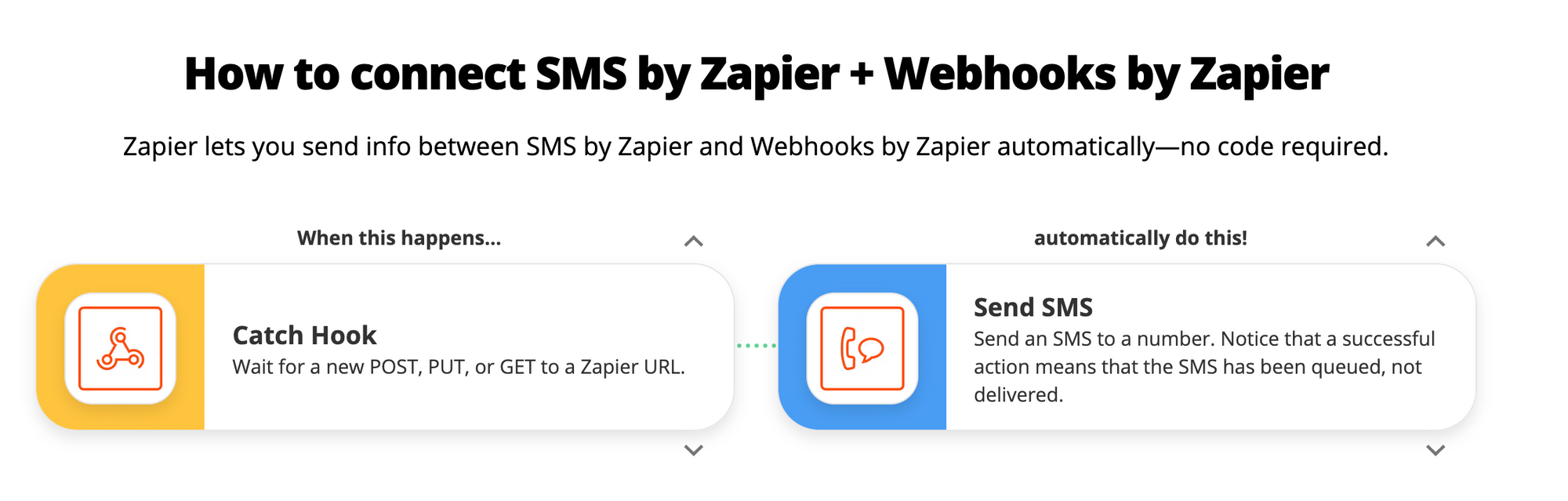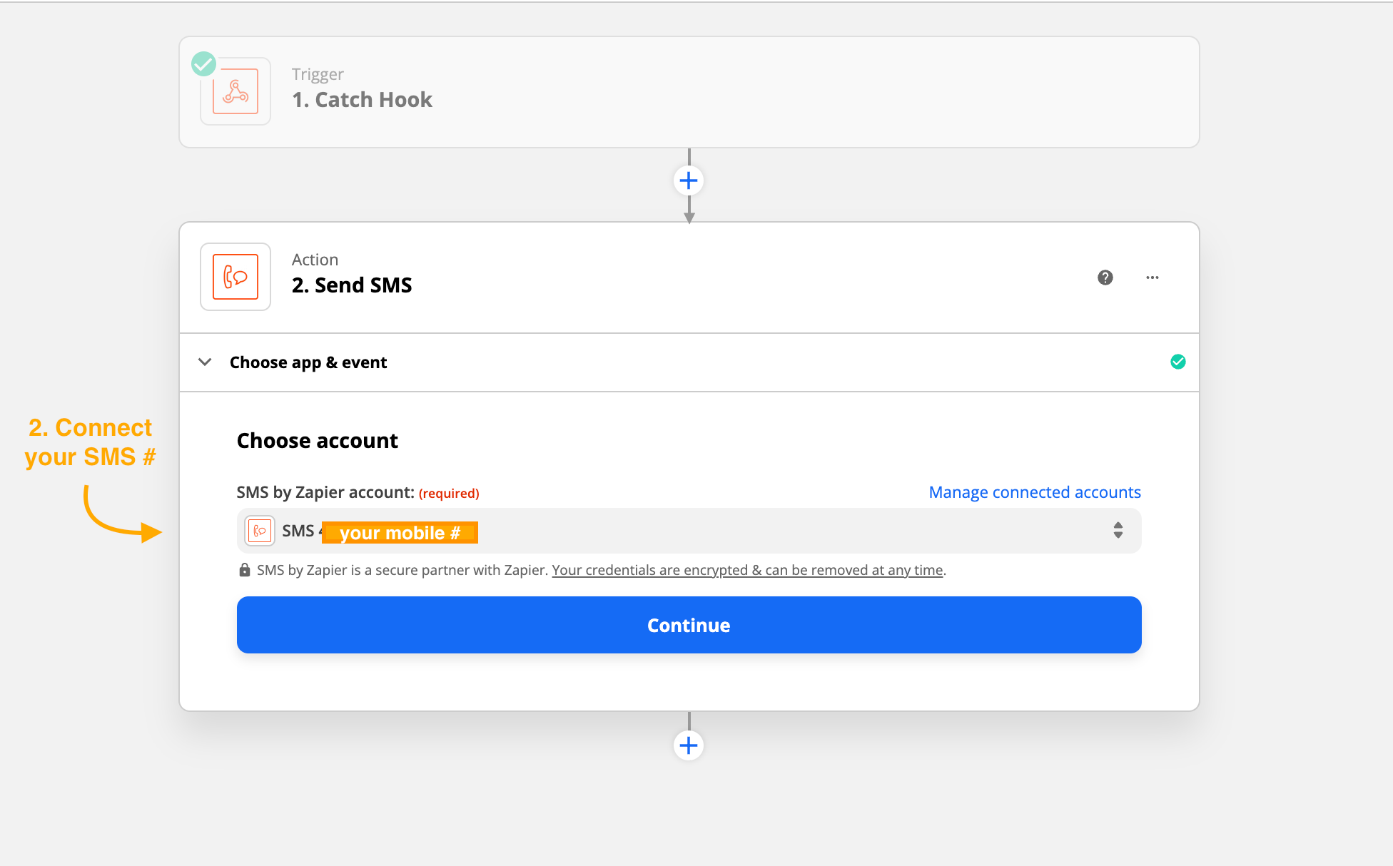 To begin, create a Zapier.com account and click the following link to load the SMS messages via webhook template.