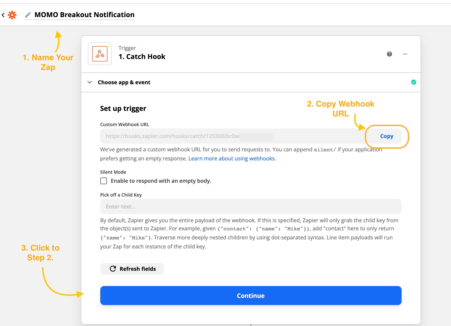 The process is very straightforward. Just copy the webhook URL and paste into your desired MOMO webhook notification.