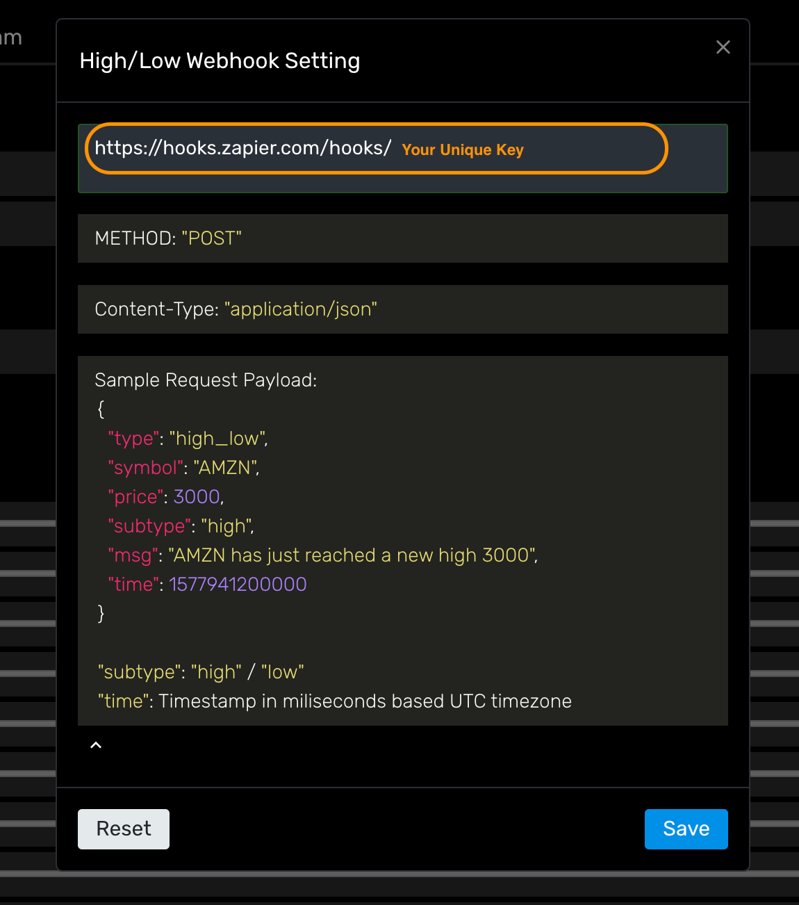 After you set up your account and select the Zapier Webhook to SMS template, copy the Zapier Webhook URL (above) and paste into appropriate MOMO webhook alert and save.