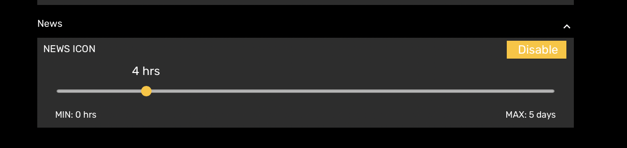 Configure the notification icon timeframe in Settings. Setting for 4 hours will only display the News icon for any news in past 4 hours.