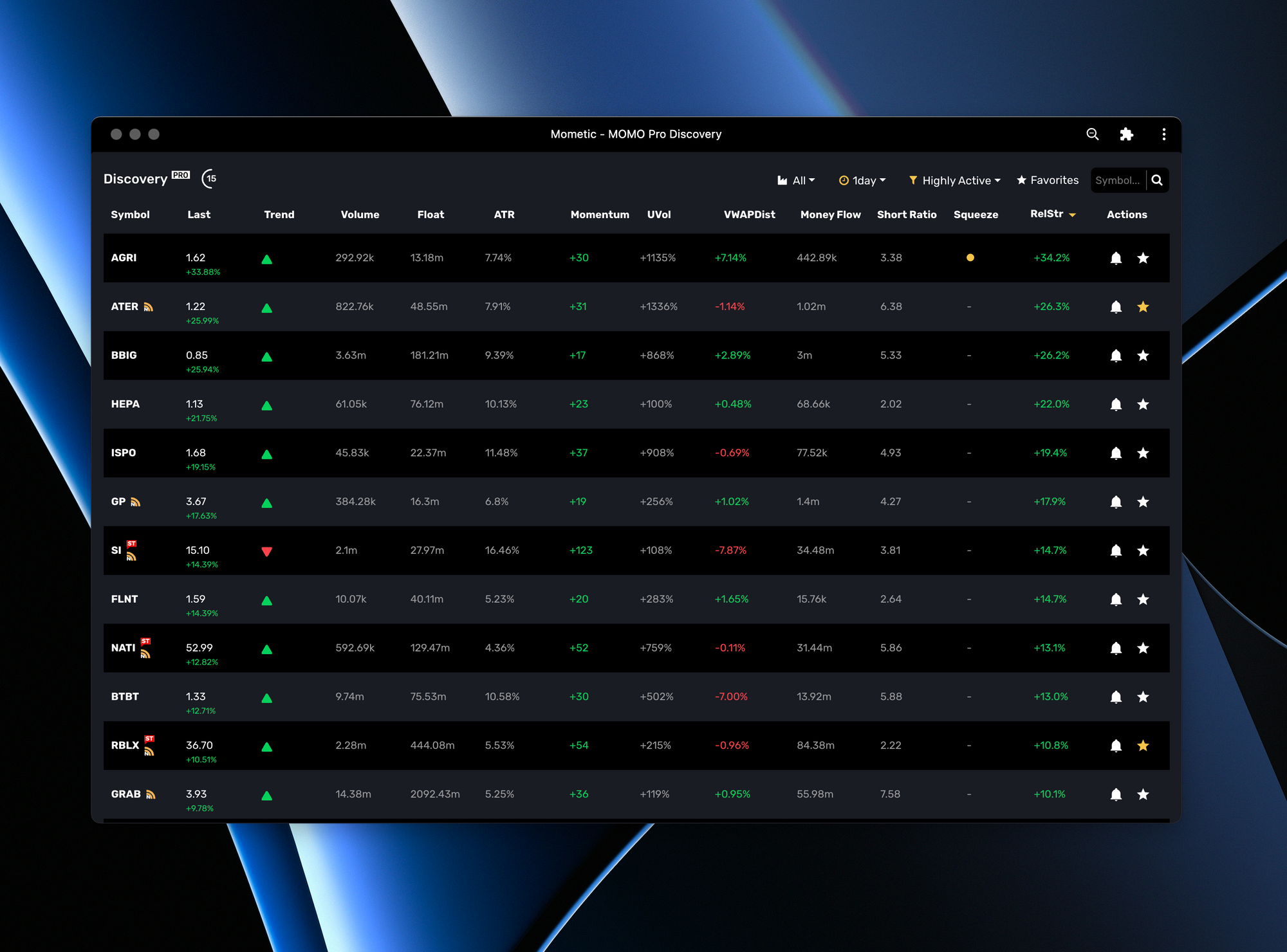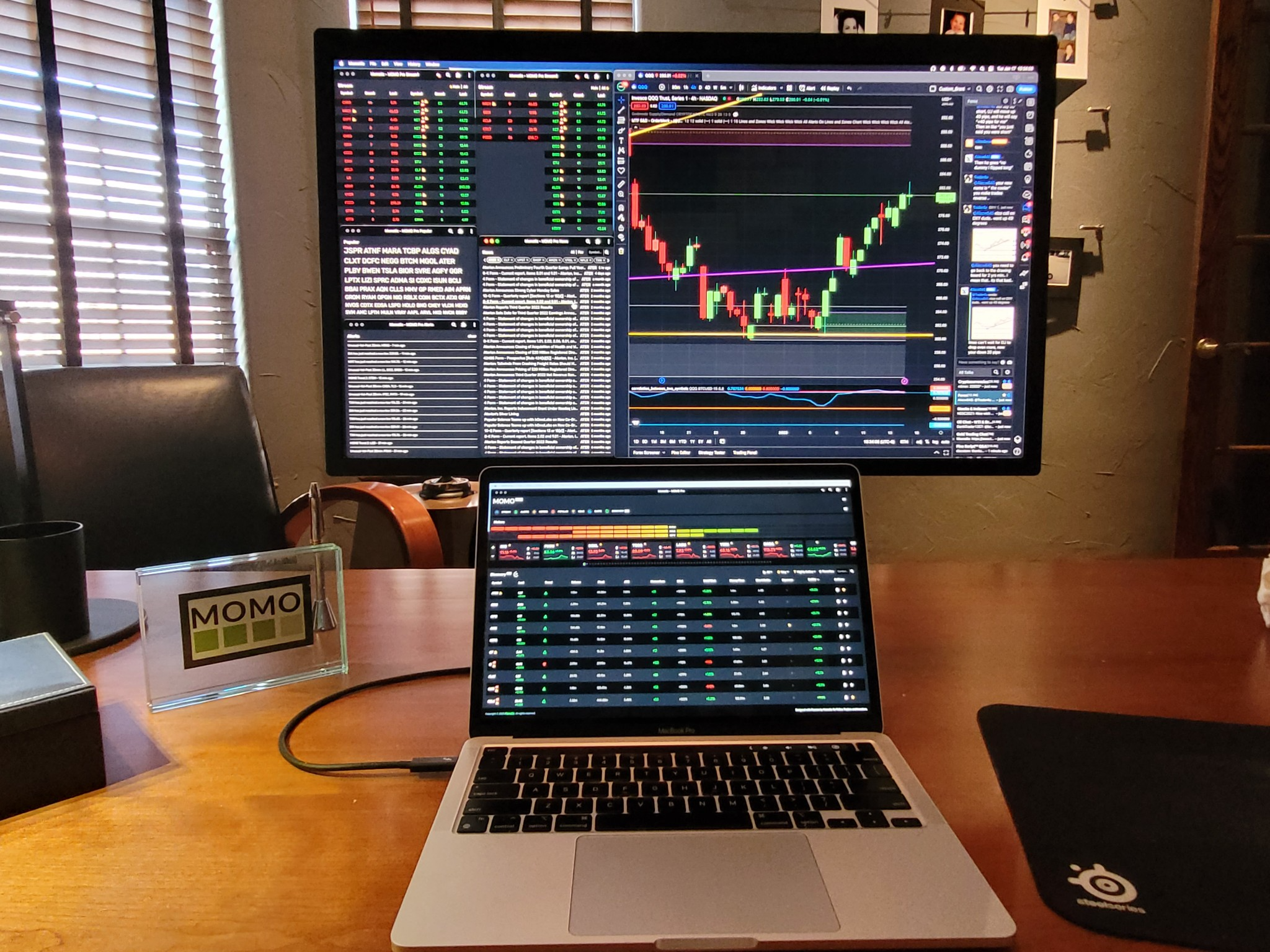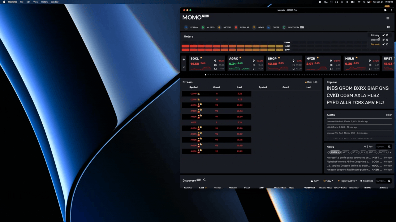 We now have the ability to pop-out windows and drag & drop across multiple screens as needed. Want MOMO News on one screen, MOMO Discovery on another? Done! You can resize, independently, to meet your needs as you wish. We think this is a killer feature and allows you set up your trading rig exactly how you want.