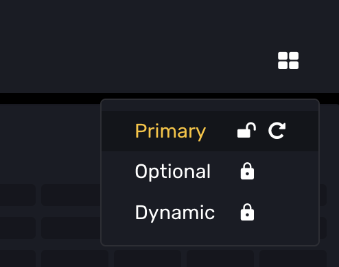 1 - Click the layout icon on top right of Dashboard (4 small squares). Choose either the Primary or Optional layout. Unlock chosen layout.