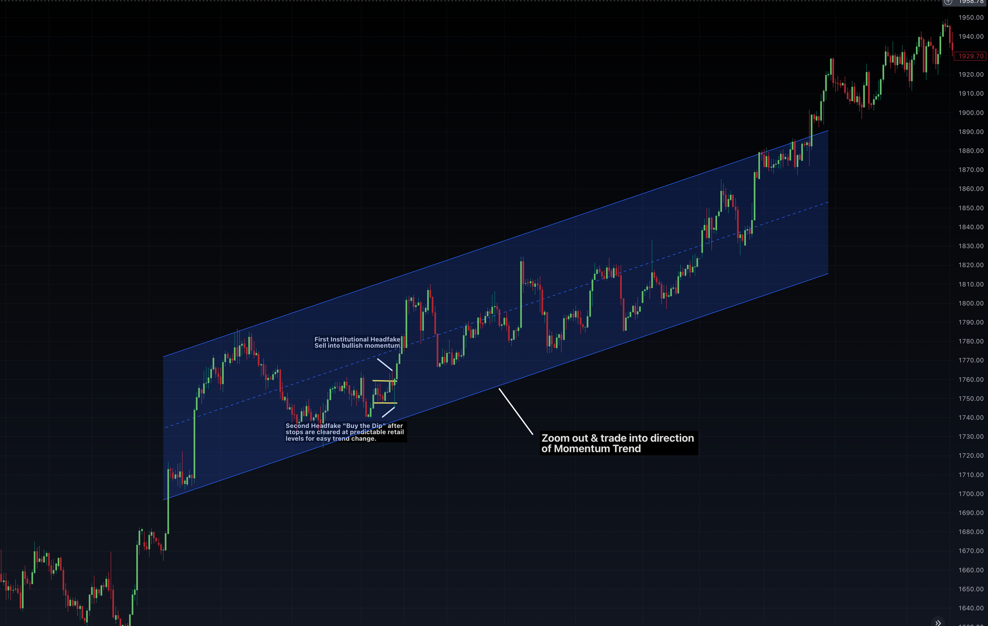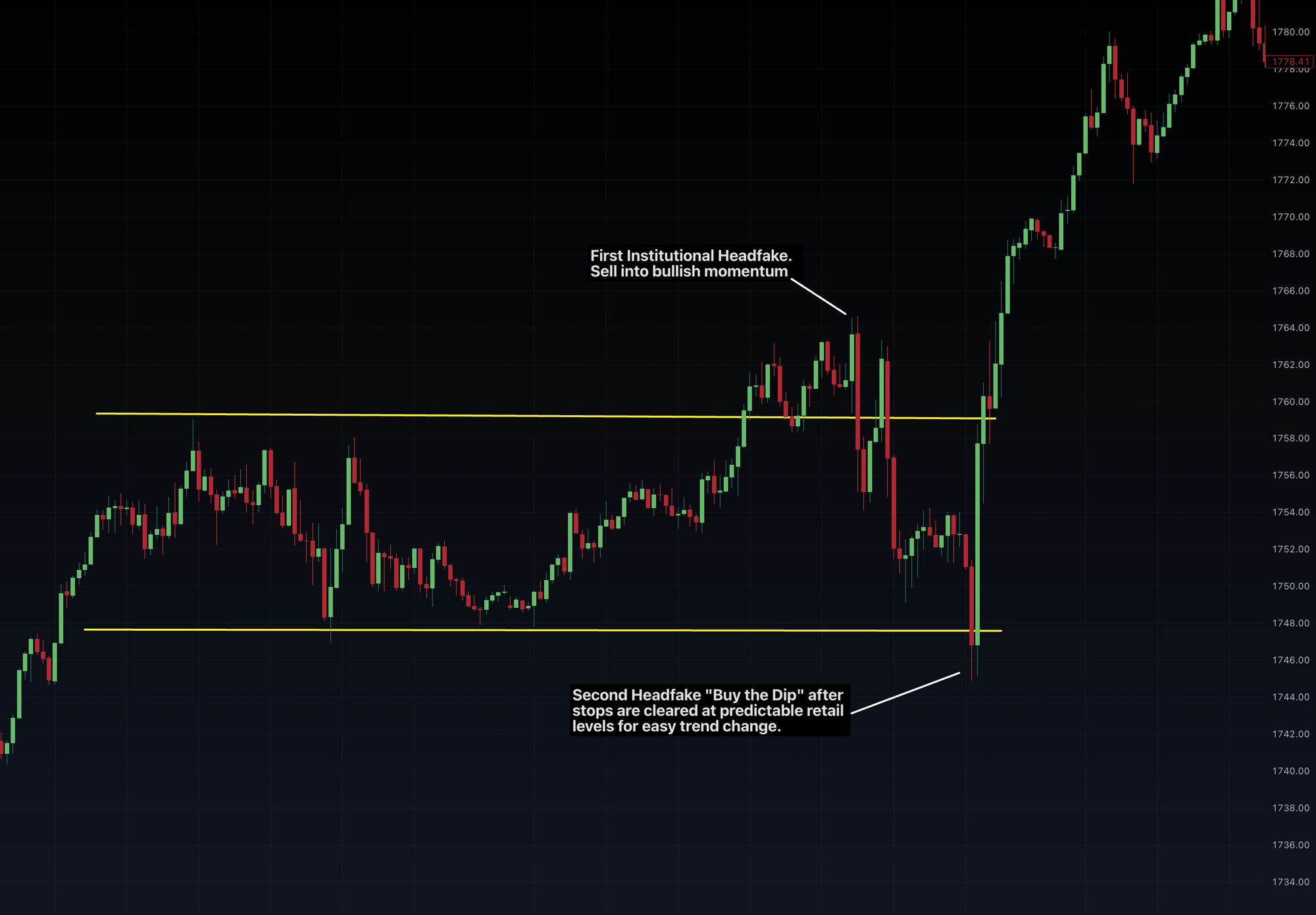 Mastering these headfakes requires charting and live trading experience, By understanding how institutions can control the market, you can identify the direction of the market trend that they are trying to push and follow it after the second liquidity flush.