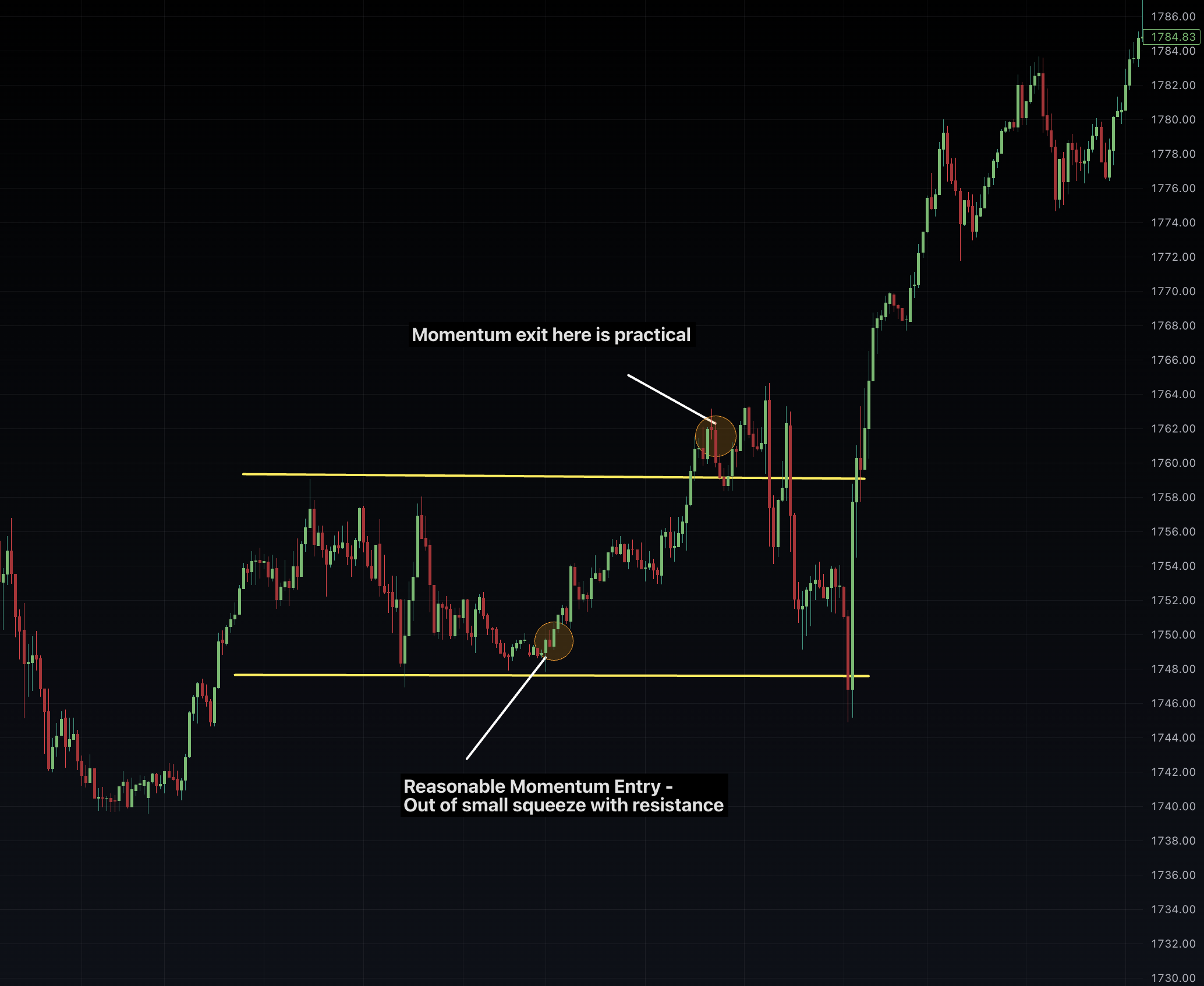 - Employ longer Momentum timeframes. Look past the 15 min and move to 4hr and note continued strength. The more bullish (bearish) timeframes aligned the better.