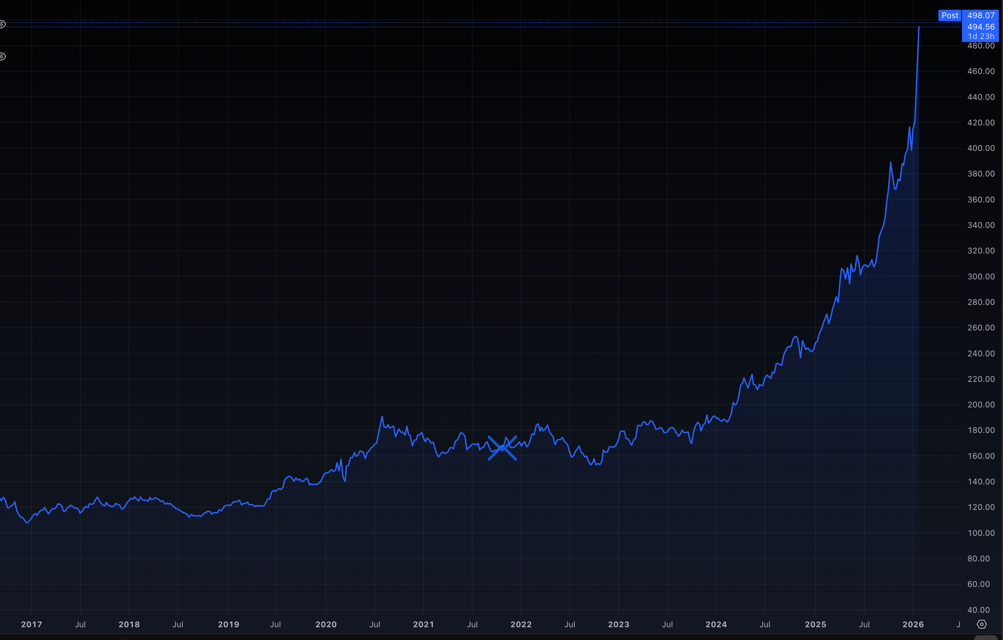If there's a sizable drop, then recall that for the entirety of 2025, the dips were bought aggressively and they were short-lived. The most recent correction in 2026 lasted for a few hours. If this same pattern repeats, I think it's dangerous to put a stop loss on gold positions (meaning you get stopped out on a momentary dip and miss the recovery and possible gains). You could potentially put some buy orders to catch value, but its complicated either way.