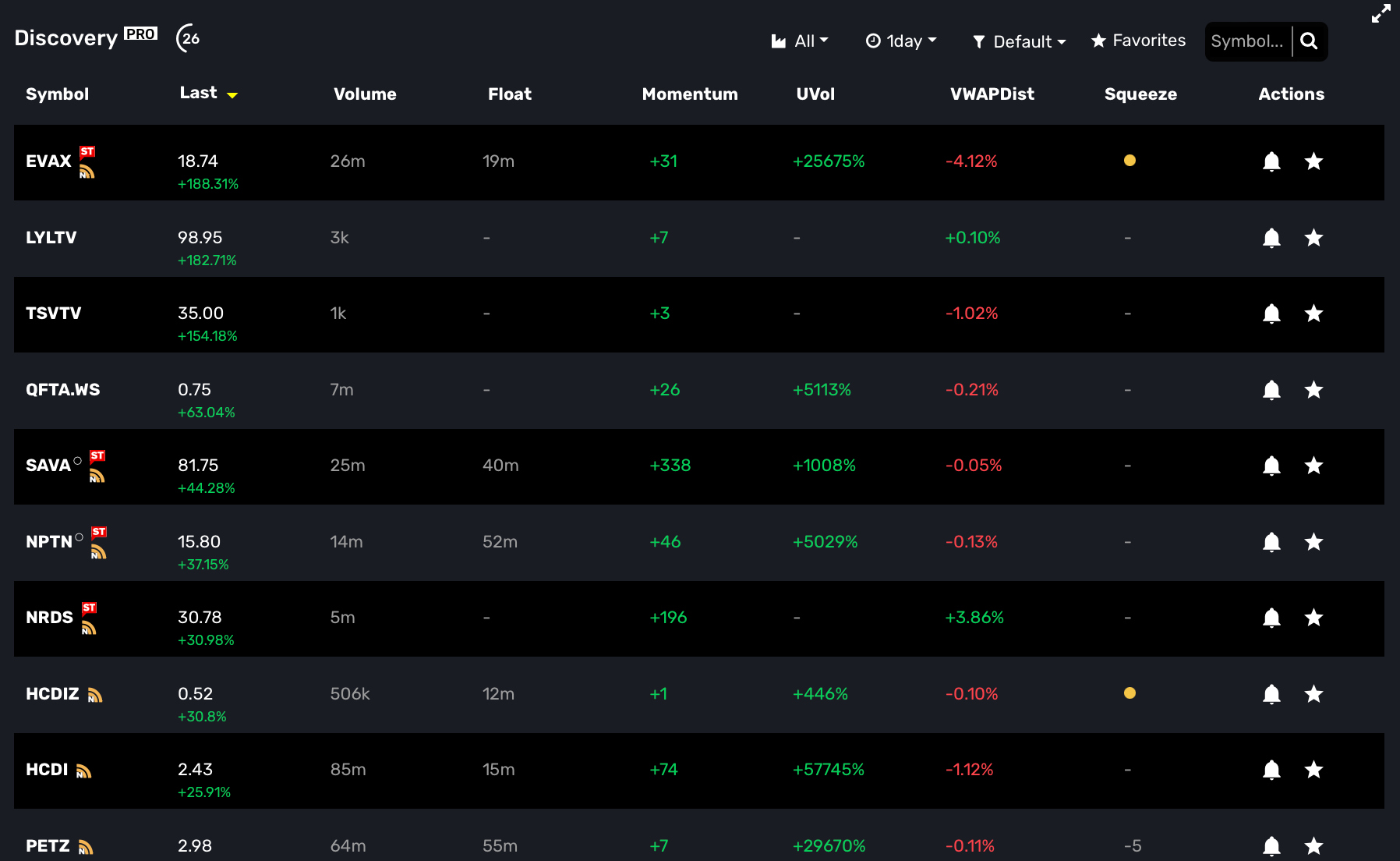 Given our squeeze scan algo is based off 4 different calculations (ATR, Keltner, Bollinger, SMA) we can’t promise never to have some noise - all squeeze indicators do, but we think you will agree this is special - particularly since you can view all squeezes on one page versus having to load charts on each AND also create custom filters (e.g. Unusual > 30% and also Squeeze = True) to highlight those most primed to break.