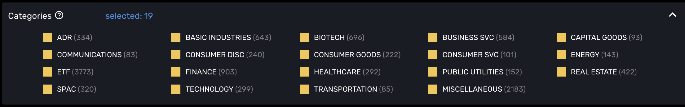 Most classifications are intuitive. Some placements are influenced by traders interest in being able to filter out specific categories (e.g. ETF's and SPACs).