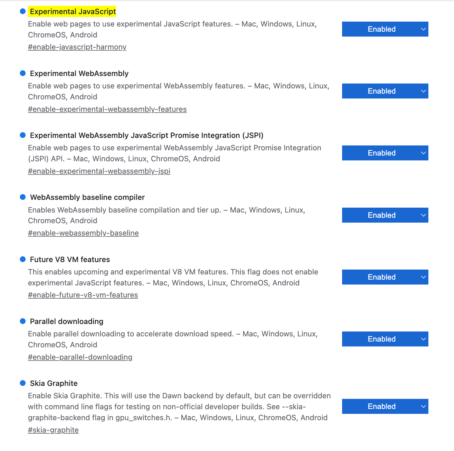 I then enabled the 3 Web Assembly options for a slightly improved score.