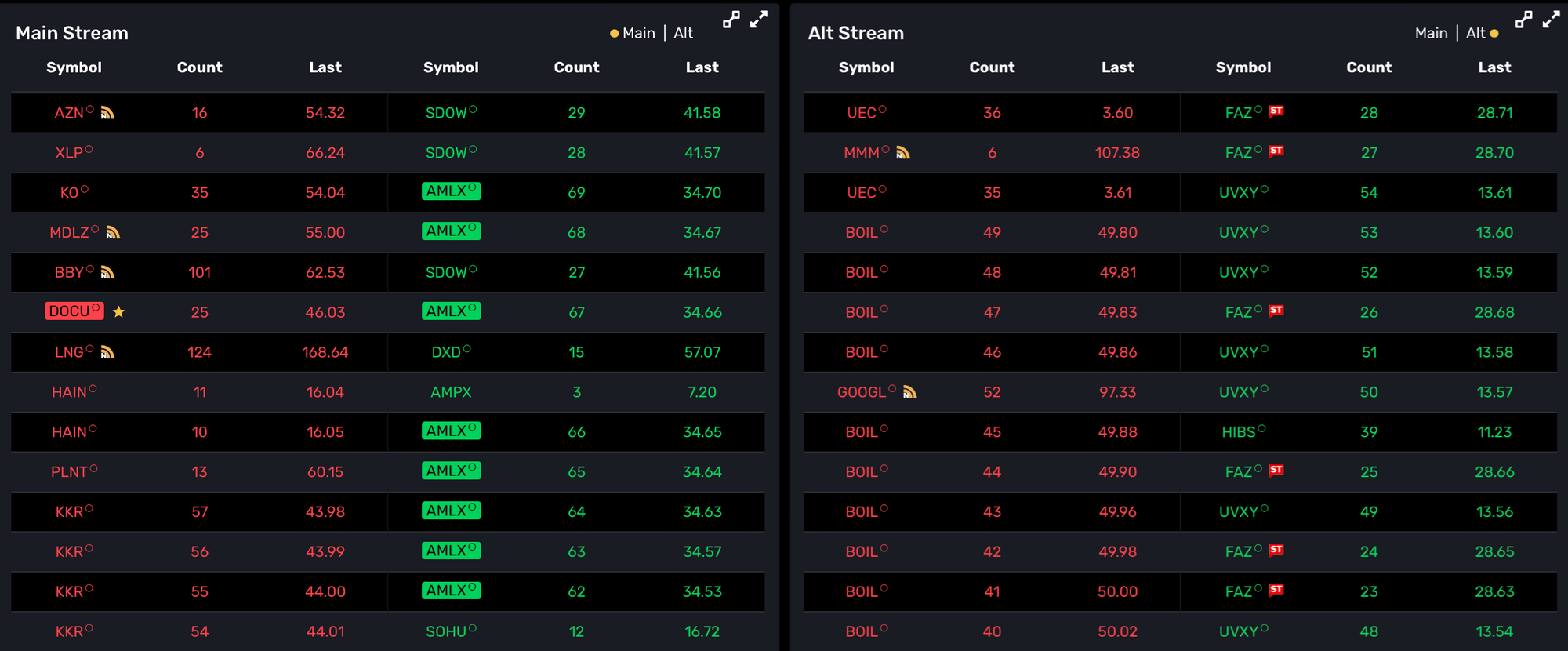 Custom Streams - Ever have the need to have multiple breakout Streams? Well Custom Streams lets you. With Custom Streams you can define an alternate Stream which you can either upload a CSV( or add manually), use our Popular list for automatically watching the most active stocks on MOMO, use your Favorites, or simply just have another filtered list. Read more...