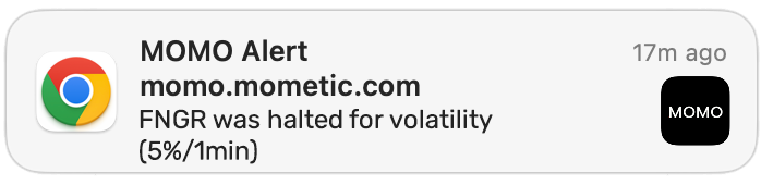 Halt Alerts with Resume (Bonus!) - Many of you don't know we also have a Halt notifications. These need to be enabled in Settings, but once enabled you are armed with instant knowledge of halts and reason codes. "Resume" notifications are also included. Read more...