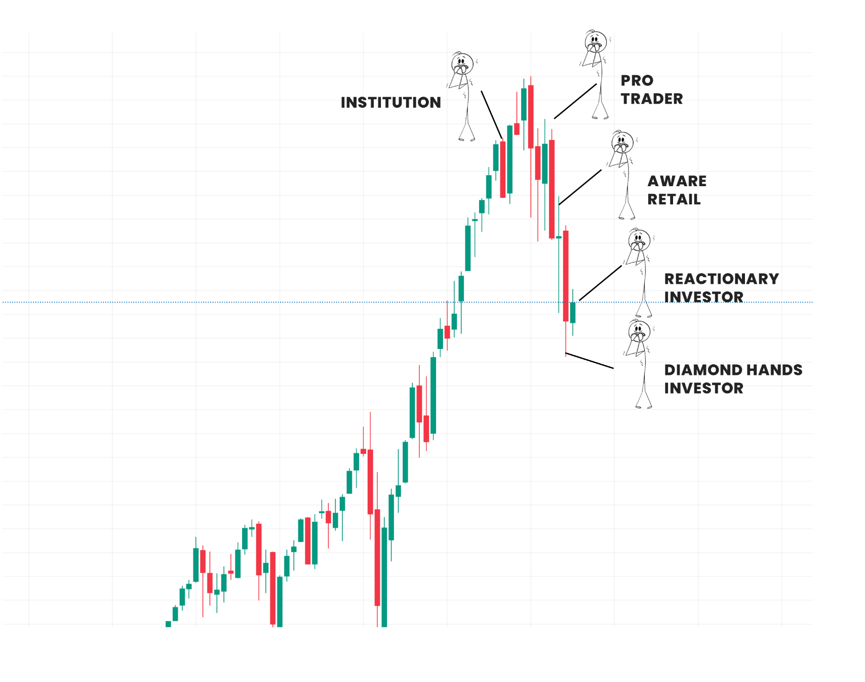 I like to visualize the market as cohorts of traders. Individually they don't move the indicies, but as collective cohorts, they have meaningful power. Also, they each react to markets differently from a timing and loss aversion perspective.