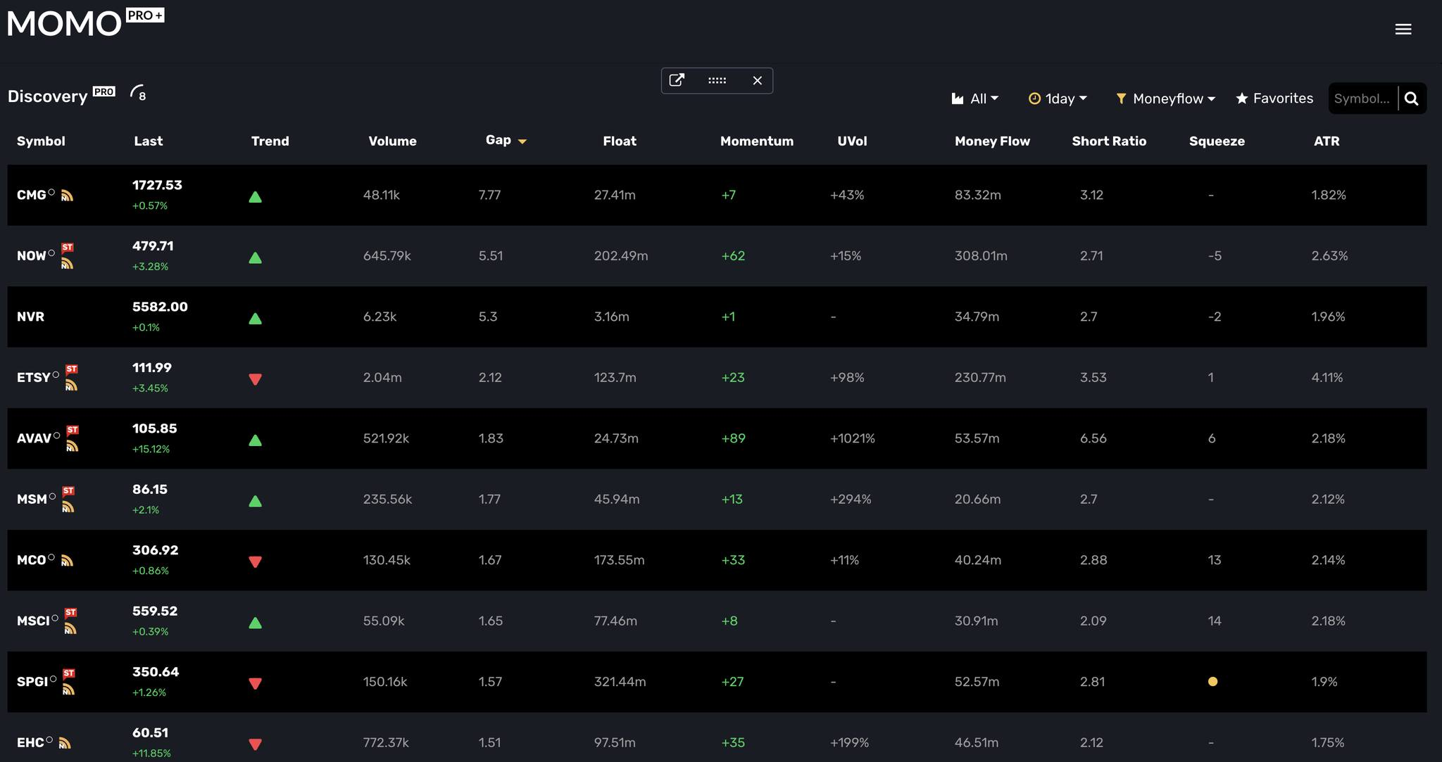 Our platform offers real-time data across 100% of the trading hours allowing investors to quickly identify trends and make informed decisions based on a more complete picture of the market. MOMO Pro's customizable alerts and filters help users stay up-to-date with market movements and act swiftly to capture potential gains.