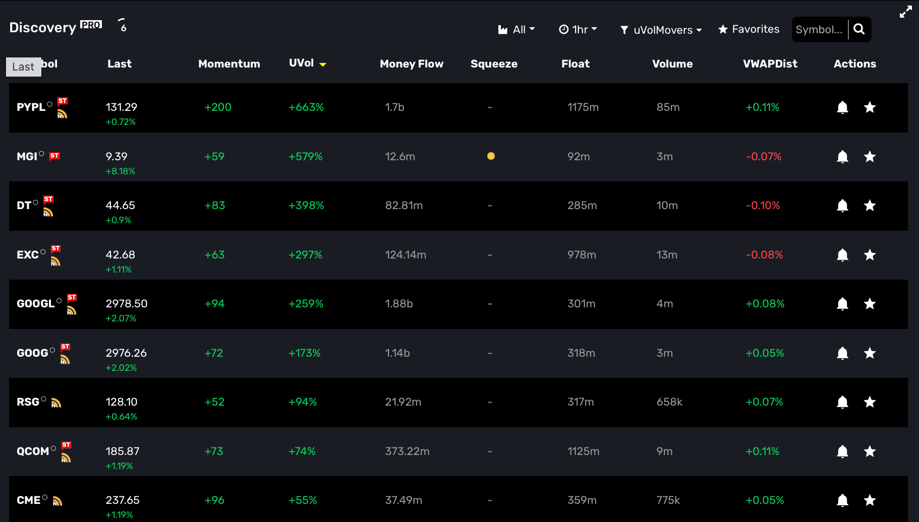 Unusual volume (uVol), sometimes called relative volume (rVol) , is a powerful way to uncover exploding market interest. The premise of uVol is that volume that is abnormal is usually correlated to an event or trend that drives incredible interest in the stock. This event could be hype around a new technology (metaverse, AI, quantum), rumor around M&A, short squeeze, or even just a large institutional trade.