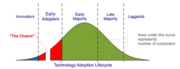 We have seen the technology adoption lifecycle in its full glory, which includes the notion of using a success-failure “chasm” to determine whether a product is market fit.