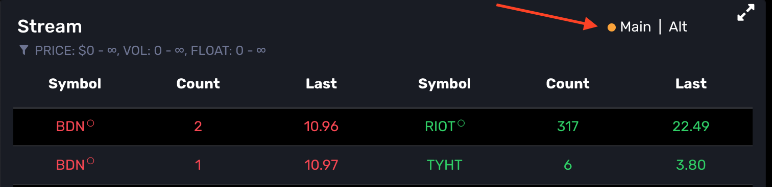 This view will show any new high or new low and acts independently from the settings for the main view.